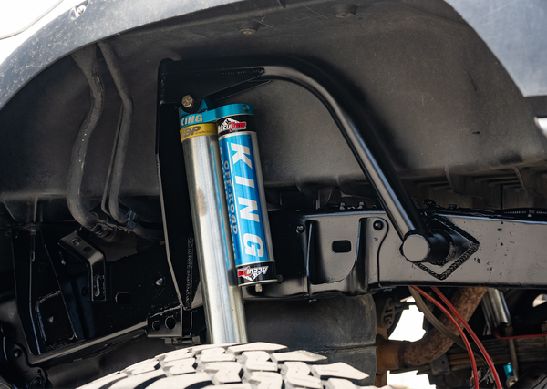 Includes Left and right side-specific shock hoops, (4) axle shock tabs, 1/2" grade-8 shock mounting hardware. Shocks are not included. We recommend King 2.5x12" Piggy back resi, or remote resi.